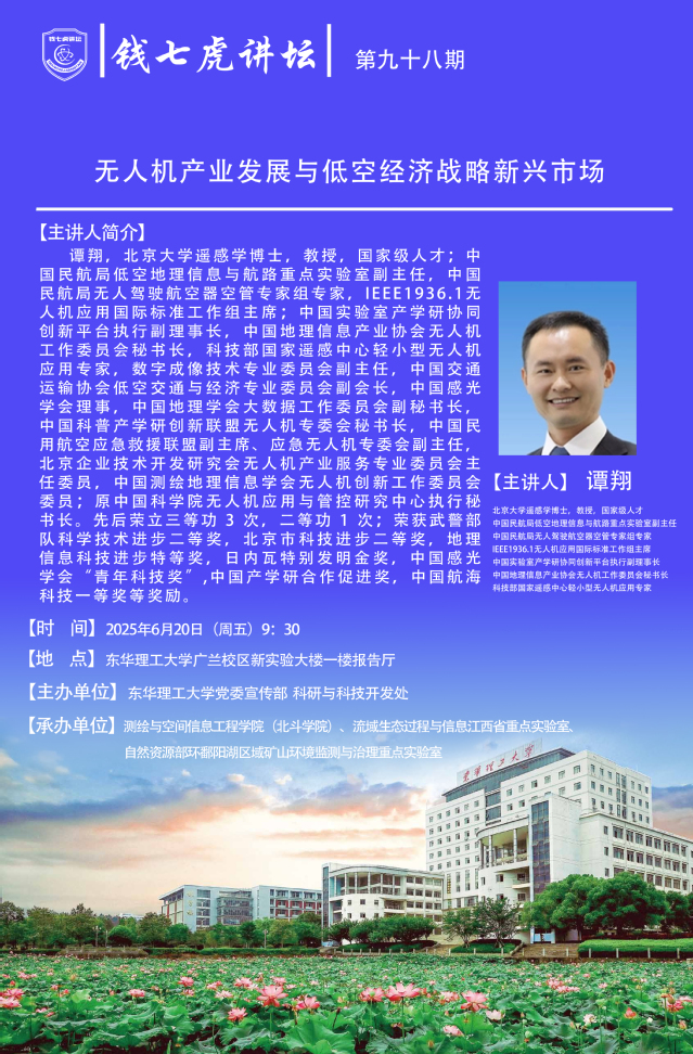 【钱七虎讲坛第九十八期预告】无人机产业发展与低空经济战略新兴市场