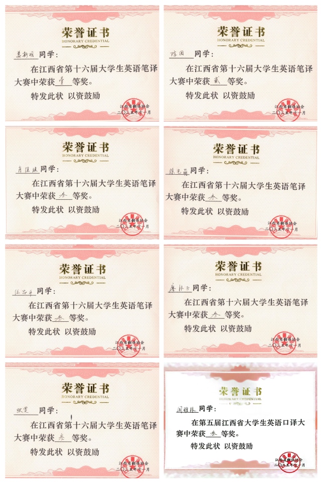 11月8至9日,第五届江西省大学生英语口译大赛与江西省第十六届大学生英语笔译大赛在南昌大学圆满落幕。东华理工大学学子表现优异,共获一等奖1项、二等奖1项、三等奖6项。