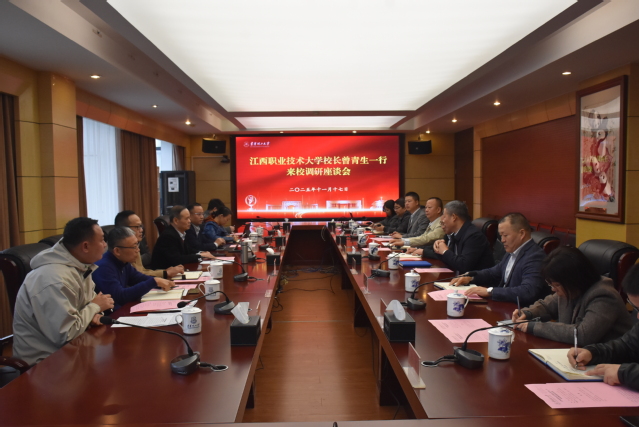 11月17日上午,江西职业技术大学党委副书记、校长曾青生,副校长卢致俊一行到东华理工大学调研交流。东华理工大学召开座谈会,校党委常委、副校长朱笃出席,校党委常委、副校长熊国保主持。