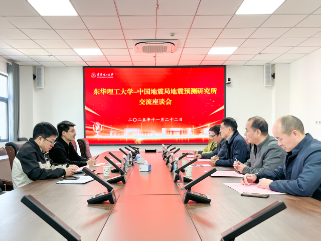 11月22日上午,中国地震局地震预测研究所(以下简称“研究所”)副所长李营、研究员陈志一行到东华理工大学调研交流。学校召开座谈会,校党委常委、副校长邓居智出席并主持。