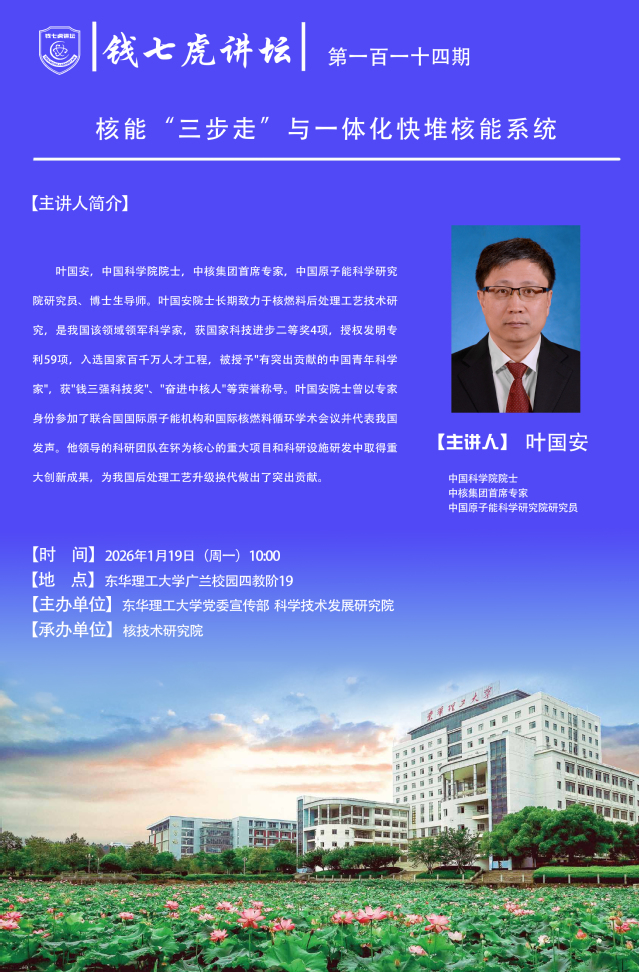 【钱七虎讲坛第一百一十四期预告】核能“三步走”与一体化快堆核能系统