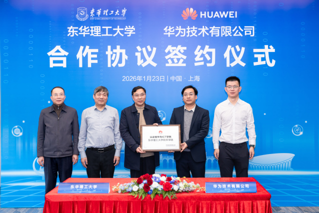 杨波和常刘科分别代表双方签署战略合作协议。会上还举行了东华理工大学“华为ICT学院”授牌仪式。