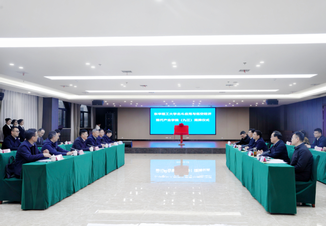 3月18日,东华理工大学北斗应用与低空经济现代产业学院揭牌仪式在九江市举行。九江市委副书记、市长蒋文定,东华理工大学党委书记张福庆出席仪式并共同为学院揭牌。九江市政府副市长杜少华,东华理工大学党委常委、副校长熊国保,江西省委军民融合办综合协调处处长罗志宏出席仪式,仪式由九江市柴桑区委书记盛炜主持。
