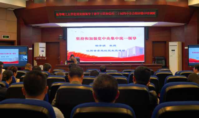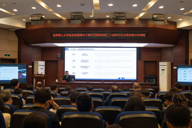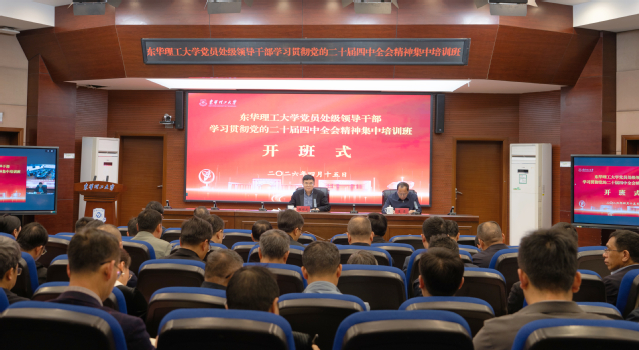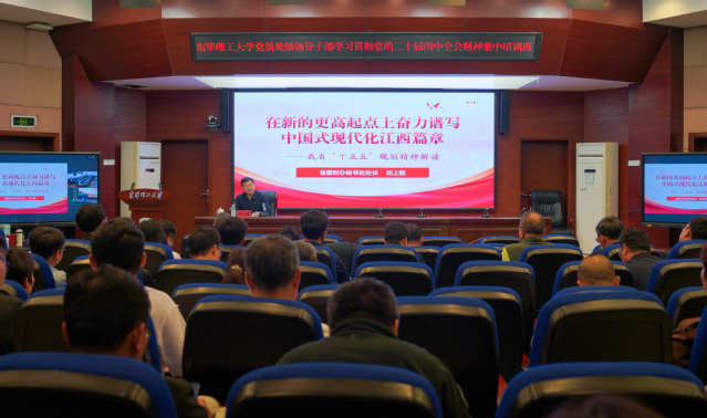 4月15日至17日,东华理工大学在南昌、抚州(视频连线)两校区同步举办党员处级干部学习贯彻党的二十届四中全会精神集中培训班。校党委书记张福庆作开班动员讲话,并以“深入学习贯彻党的二十届四中全会精神,奋力谱写新时代学校高质量发展新篇章”为题作专题辅导。校党委副书记、党校校长夏菲主持开班式并作结班讲话。全校处级干部参加集中培训。