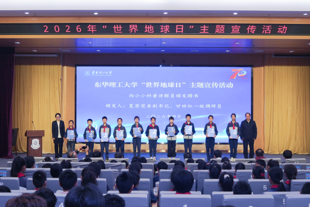 4月22日,东华理工大学在广兰校园举行第57个“世界地球日”主题宣传活动。本次活动由江西省自然资源厅、东华理工大学联合主办,东华理工大学党委副书记夏菲、江西省自然资源厅一级调研员甘田红、中国科学院广州地球化学研究所研究员彭头平、南昌市新庐小学师生代表及东华理工大学师生代表参加活动。