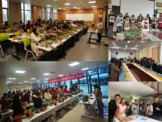 机关一、机关二、艺术学院分工会分别开展了“插花”“种花”活动。通过对花卉的了解、分类、养护等方面,解读插花、种花的独特艺术形式。在花艺师的指导下,老师们创作构思、精心修剪、插枝造型,形态各异的花篮,展示了不同的审美追求。现场氛围温馨快乐,十分惬意;机电学院、体育学院分工会女教职工在专业老师的示范指导下,饶有兴致地制作甜点,互相品尝,沉浸在享受自制美食的温馨氛围中;经管学院分工会女教职工通过灵巧双手,用心制作手工香牌,把生活中的美好点滴融至现实中。