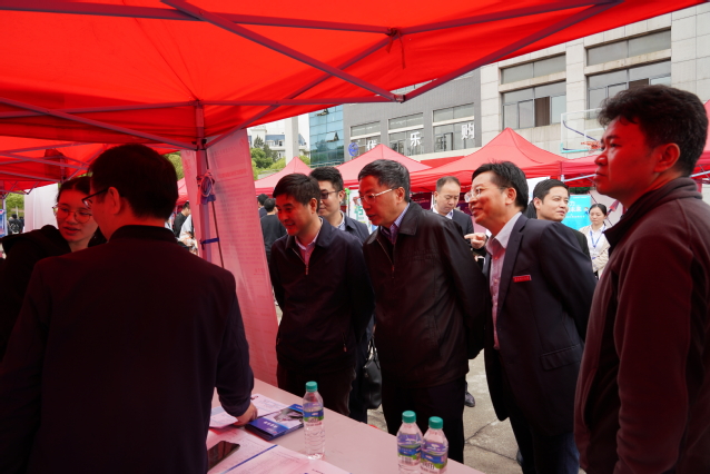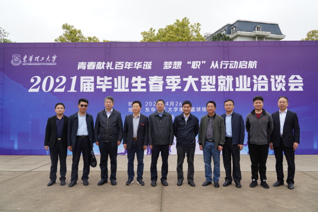 为庆祝中国共产党百年华诞,贯彻落实习近平总书记在党史学习教育动员大会上的重要讲话精神,426日上午,学校与江西省就业创业服务中心在广兰校区共同举办了2021届毕业生春季大型就业洽谈会。江西省就业创业服务中心主任郭锦亮、副主任陈学军一行到场检查指导,并与招聘单位和毕业生亲切交谈,详细了解岗位需求、薪资待遇、毕业生求职意向等情况。期间,郭锦亮一行还就我校就业创业工作进行座谈调研,校党委副书记、校长孙占学,副校长聂逢君等全程陪同。