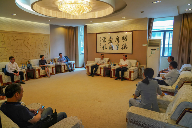吴磊对学校的热情接待表示感谢,简要介绍了赣南师范大学的基本情况以及本次调研的目的,希望两校拉近距离、增进友谊,继续在创新创业人才培养、科学研究、学生管理等方面加强合作交流。