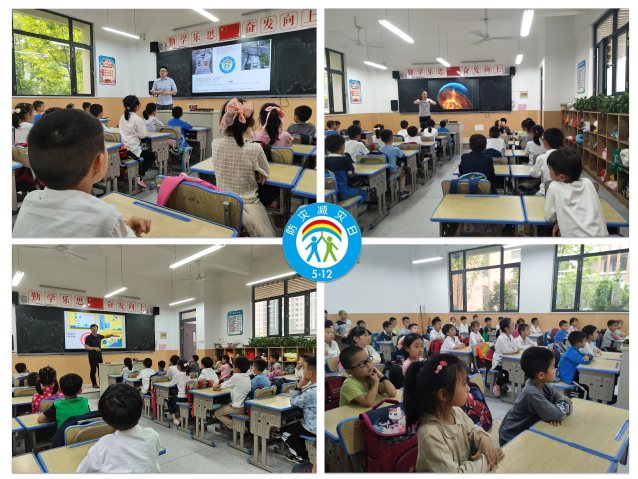 5月12日下午,地控学院由教工党员组成的博士科普宣讲团带领学生走进南昌市昌北二小开展科普宣传,为小学生们讲解关于防灾减灾的科学知识,老师们围绕《地震是什么》《绝处逢生——地震逃生自救》《灾害监测中的“千里眼、顺风耳”》等专题,重点普及地震、洪涝等灾害知识和防范应对技能。生动有趣的讲解深深地吸引了在场的小朋友,不断激发了孩子们的好奇心和求知欲,一个个争先恐后地发言和提问,老师们都非常耐心认真地为大家答疑解惑。廖可仪小朋友说到:“我要向博士叔叔们和大学生哥哥们学习,长大以后也要成为像他们那样的人,用学到的科技知识保护地球,努力减少地球上灾害的发生,保护人类的生命财产安全。”