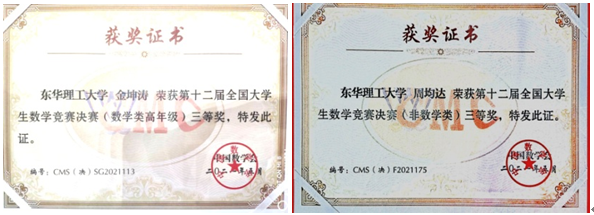 第十二届全国大学生数学竞赛初赛于2020年11月28日举行,我校金坤涛同学以76分的成绩荣获江西赛区数学专业组B类第一名。江西赛区入围全国决赛的选手共14人,其中,数学专业组和非数学专业组各7人,金坤涛同学以全省第一名成绩获得数学类高年级组全国三等奖(位列第一)。