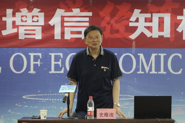 “15年来,周义朋扎根边疆勘探一线,用他的默默奉献,执着与坚守,谱写了一曲当代中青年知识分子为国为民的忠诚之歌。”史维浚通过讲述自己的学生——周义朋的故事,带领师生深入学习周义朋的感人事迹,引领师生向榜样看齐。他介绍了周义朋进校后的表现,特别是学习态度、生活严谨的不同一面。史教授通过PPT图文并茂地讲述了周义朋扎根新疆戈壁沙漠中潜心搞科研的不平凡经历,从做人做事等方面为现场同学上了一堂生动的思想政治教育课。史维浚谈到,周义朋平均每年野外工作时间在9个月以上,扎根边疆15年,先后转战新疆吐鲁番十红滩矿床、伊犁512矿床、513矿床、510矿床,野外试验的环境十分恶劣,在新疆吐哈盆地戈壁腹地,沙尘暴肆虐。“他为人正直热心,有亲和力,和领导、职工都相处得很好,当地的居民都亲切得叫他周老师。他耐得住寂寞、经得起磨炼,放弃了许多个人利益,一心为事业奋斗。一名科教工作者献身国防的崇高品格与精神追求,是传承‘艰苦奋斗 为国奉献’东华理工精神的楷模,他是我最出色的学生。”史教授自豪说道。最后,史维浚对在场学生寄予殷殷期盼,希望同学们能够学习周义朋身上坚韧不拔,持之以恒的优秀品质,筑牢理想信念之基,将个人发展与国家发展紧密结合,完成时代赋予青年这一代人的责任与使命。