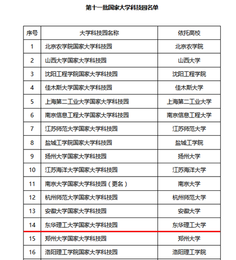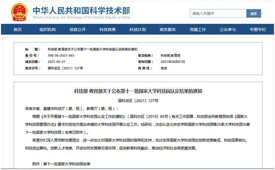 6月1日,科技部、教育部联合发布《科技部 教育部关于公布第十一批国家大学科技园认定结果的通知》(国科发区〔2021〕127号),东华理工大学科技园被认定为“国家级大学科技园”,这是江西省第四家,也是我省除省会城市外唯一一家获批的国家级大学科技园。