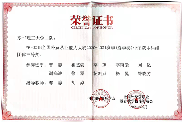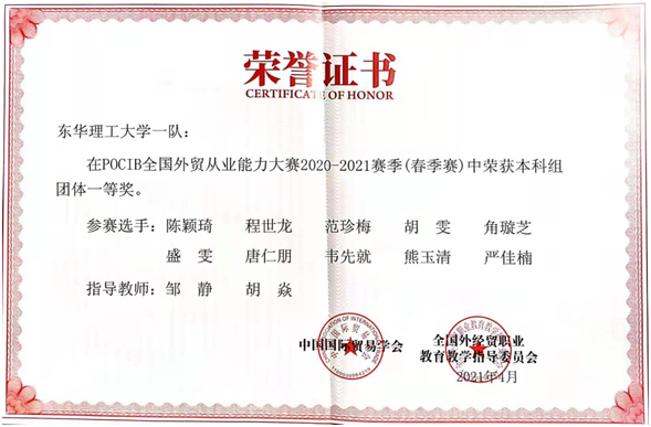 本次比赛十分考验参赛选手的团队协作能力和外贸操作技能。我校学子在整场比赛中充分展现了他们的团队合作和勇于攀登的精神,也展示了优秀的外贸从业能力。同时,本次比赛荣誉的获得也充分体现了我校国际经济与贸易专业在应用型人才培养上进行实践教学改革所取得的显著成效。(图/文 邹静)