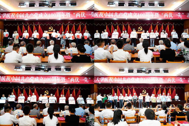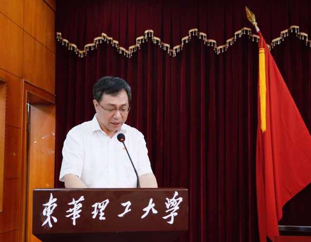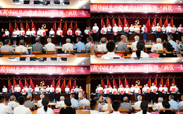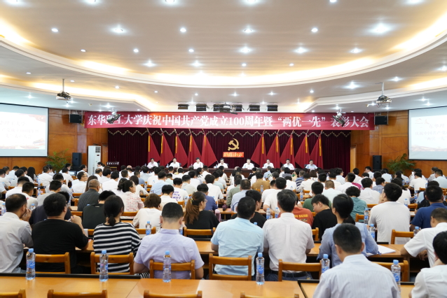 6月30日上午,我校庆祝中国共产党成立100周年暨“两优一先”表彰大会在南昌校区软件楼四楼报告厅举行。重温党的光辉历程,讴歌党的丰功伟绩,阶段性总结党史学习教育成果,颁发“光荣在党50年”纪念章,表彰先进基层党组织、优秀共产党员和党务工作者,激励动员全校各级党组织和广大党员干部,不忘初心、牢记使命,凝心聚力谋发展,满怀豪情谱写东华理工大学发展新篇章。在家校领导、校党委常委出席大会,党员处级干部、先进集体、先进个人代表,师生党员代表共360余人参加大会。校党委书记范小林致辞,校党委副书记刘紫春主持。