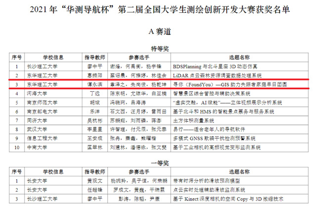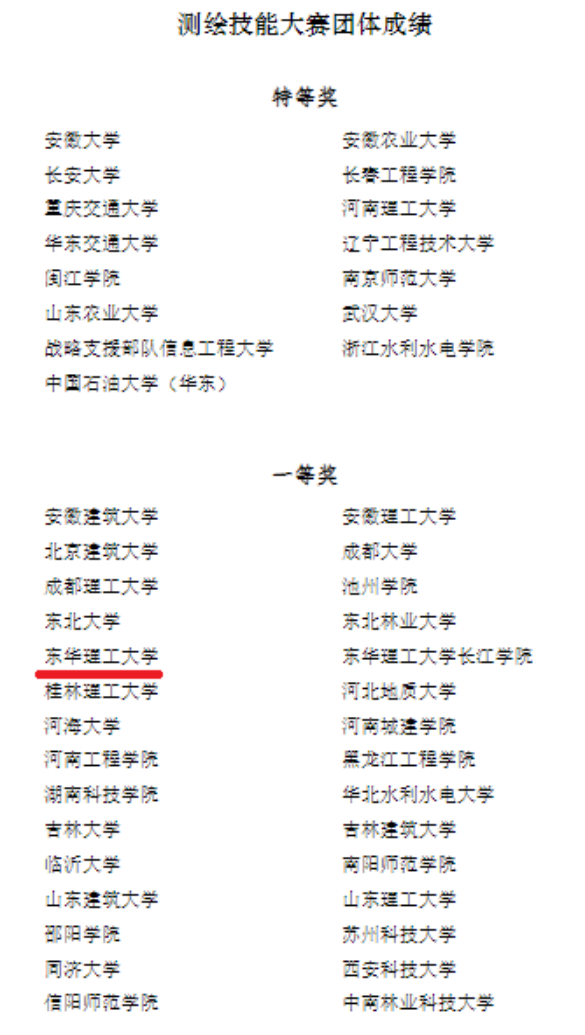 本次大赛包括“华测导航杯”第二届全国大学生测绘创新开发大赛、“南方测绘杯”第十二届全国高等学校大学生测绘科技论文大赛、“南方测绘杯”第六届全国高等学校大学生测绘技能大赛等三项赛事。我校测绘工程学院精心组织,选派的参赛队伍在“华测导航杯”第二届全国大学生测绘创新开发大赛中荣获特等奖2项、一等奖1项、二等奖1项;在“南方测绘杯”第十二届全国高等学校大学生测绘科技论文大赛中荣获特等奖1项、一等奖3项、二等奖3项;在“南方测绘杯”第六届全国高等学校大学生测绘技能大赛中荣获一等奖1项和二等奖3项。此外,我校荣获测绘技能大赛团体成绩一等奖。