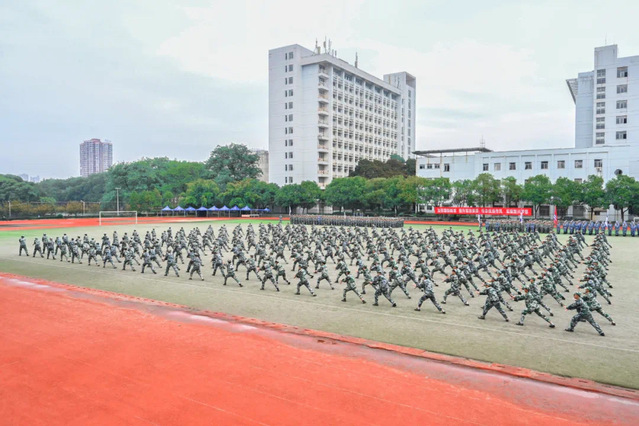 上午9:40,校党委书记范小林宣布东华理工大学2021级学生军训会操开始,伴随着雄壮的分列式进行曲,各学院新生受阅方队迈着矫健的步伐,喊着响亮的口号,以饱满的精神面貌接受了检阅,充分展现了良好的精神风貌。