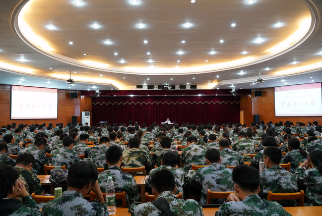校长孙占学以“校史中的党史”为主线,向新生讲述了新中国成立之初,百废待兴、百业待举,老一辈社会主义建设者在党的坚强领导下,毅然投身艰苦事业,迎难而上、不畏艰辛的担当奉献精神。孙占学从学校“为核成立,因核成名,以核成势”的初衷开篇,讲述了学校诞生于太行山,成长于红土地,腾飞于英雄城的历程,阐释了学校核军工文化内涵、国防军工情节的烙印,以及一代代东华理工人为核事业前端和后端事业甘为人梯、敢为人先的品质。从坚守爱党、报国、强军赤子情怀的最高国家科技奖获得者、东华理工大学名誉校长钱七虎院士,到退而不休炼梦如金的“中国好人”宋金如老师,扎根农村科技扶贫30余年的“农民教授”李荣同,扎根荒漠15载把论文写在大地上的“戈壁红柳”周义朋教授,孙占学用身边的榜样激励同学们要把握时代机遇,发挥聪明才智,努力成长为堪当民族复兴大任的时代新人。