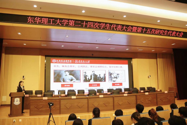 11月27日上午,团队在东华理工大学第二十四次学生代表大会暨第十五次研究生代表大会现场开展主题宣讲,以“团结奋斗”为主题,围绕党的十八大以来的十年变革,带领与会代表深刻领悟党的十年奋斗伟大成果,并号召青年学子要争当伟大理想的追梦人,争做伟大事业的生力军,让青春在祖国和人民最需要的地方绽放绚丽之花。