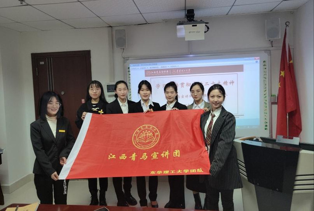 为深入学习宣传贯彻党的二十大精神,近日,江西青马宣讲团东华理工大学团队深入各高校、中学、社区开展党的二十大精神宣讲,持续兴起学习贯彻党的二十大精神热潮。