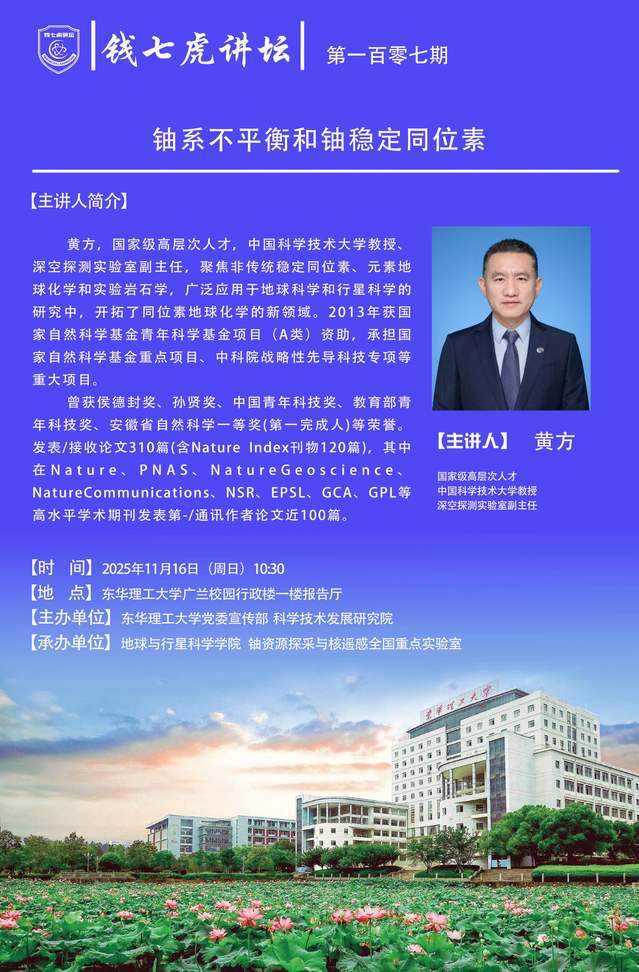 【钱七虎讲坛第一百零七期预告】铀系不平衡和铀稳定同位素