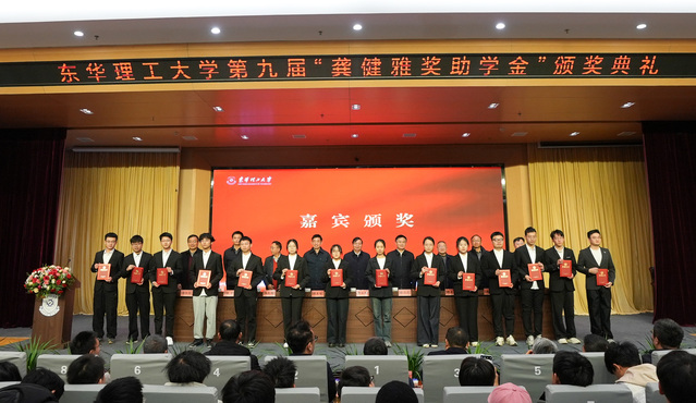 1月8日,东华理工大学在南昌广兰校园举行第九届“龚健雅奖助学金”颁奖典礼。1978级杰出校友、中国科学院院士龚健雅,校党委书记张福庆,1984级校友、湖南博达方仁工程项目管理有限公司董事长冯春翔,1995级校友、“龚健雅奖助学金”管理委员会监事长张建国出席。校党委常委、副校长邓居智主持。