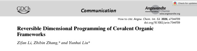 近日,东华理工大学刘云海、张志宾教授团队在共价有机框架维度调控及铀分离富集领域研究取得新突破,在国际顶级期刊《Angewandte Chemie International Edition》上发表了题为“Reversible Dimensional Programming of Covalent Organic Frameworks”的重要研究成果。东华理工大学为论文第一署名单位,2022级博士研究生李子凡为论文第一作者,刘云海、张志宾教授为论文共同通讯作者。