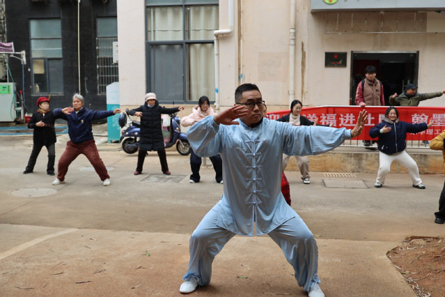 活动现场,美术与设计学院师生志愿者们挥毫泼墨,书写并送出春联200余副,还手把手教居民剪窗花、猜灯谜;体育与艺术学院教师带来“八段锦”公益教学,从呼吸、姿势到节奏逐一细致讲解,居民们学得认真投入,现场气氛热烈。