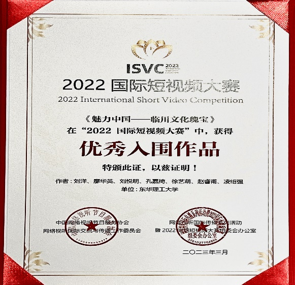 近日,我校外国语学院师生制作的视频作品《魅力中国——临川文化瑰宝》获评2022国际短视频大赛“优秀入围作品”。